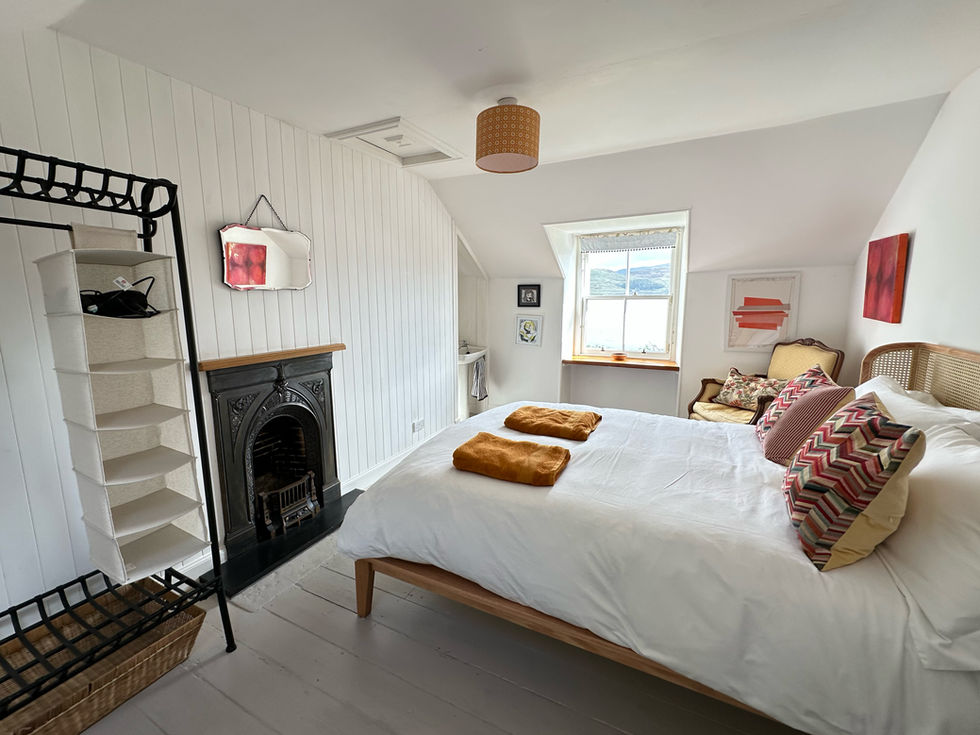 The property features a large private garden with seating and BBQ area to enjoy the beautiful views. The burn runs off the hills behind down through the garden, with two bridges you can stand and enjoy the sound of running water. Part of the garden can be closed off, so dogs have a safe contained space and there is a covered washing line. 3-4 cars can park comfortably on the drive with close access to the Loch for launching paddle boards or kayaks or maybe some wild swimming - popular activity in the area.